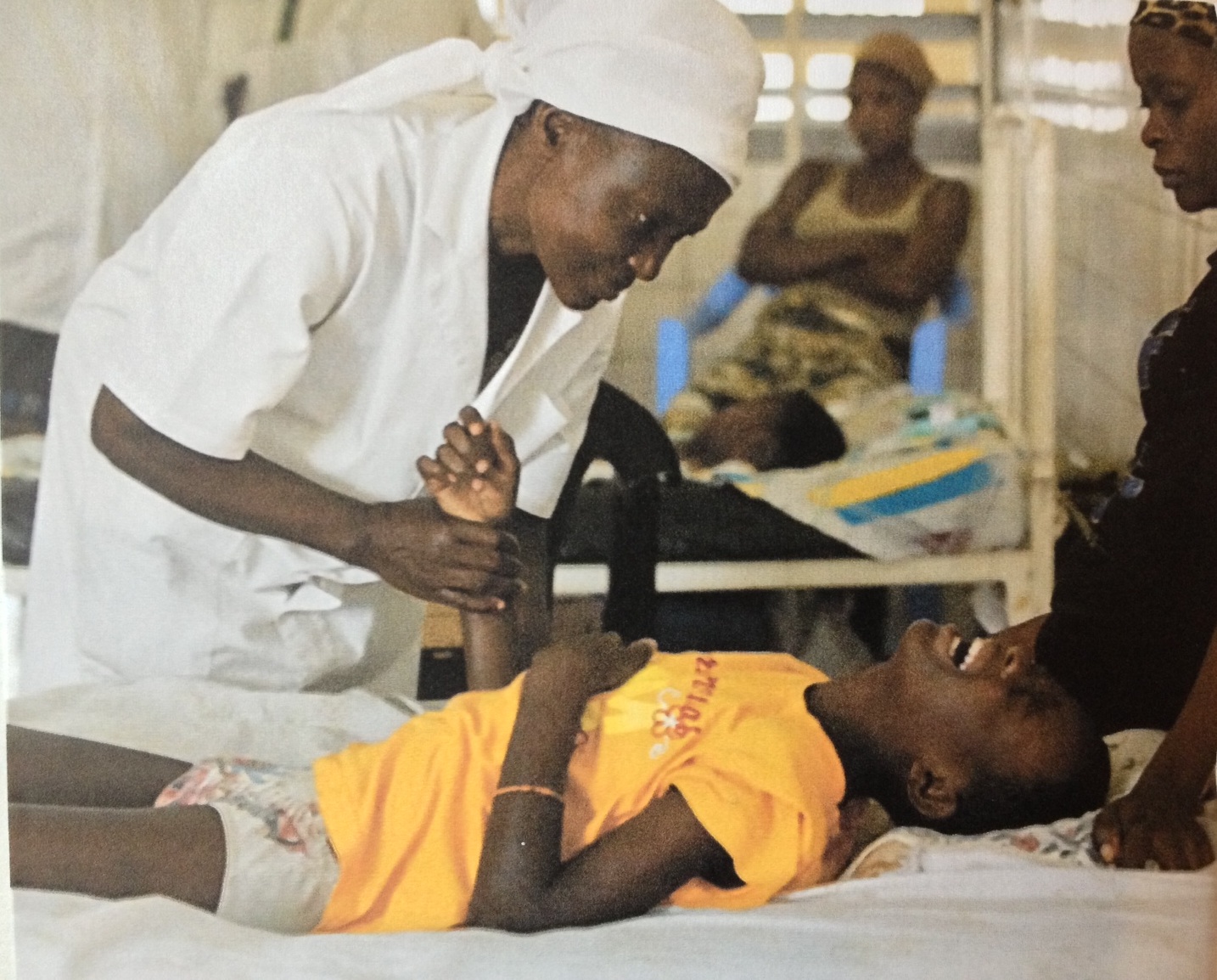 When I went out to the institute, I went up to visit a patient in the big ward which houses 29 boys ranging in age from 6 to 16. When I came into the ward, I saw a sight that stopped me in my tracks. Two lively kids of seven were wrestling vigorously in a hospital bed. It was a rough and tumble scrap.
