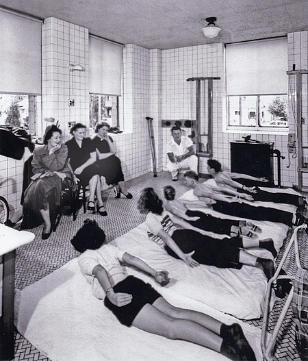The Kenny Institute, as it was in the 1940s, was, and still sometimes is, accused of being a “cult of personality”—but no hospital serving nearly a hundred people as long-term inpatients, and two or three times that during certain epidemic swells, could operate on the strength of a single individual, no matter how formidable she might have been. Sister Kenny’s ethos permeated the place, but it’s the auxiliary staff former patients recall most vividly: the people they saw every day, sometimes more than once. (Sometimes an exasperatingly large number of times.) The nurses. The “packers” who swathed their bodies in hot wool blankets to ease their cramps. And the therapists, who coaxed them so slowly and steadily back to life. People who knew them better than they knew themselves, at least for that brief breath-held moment in time, who bore witness to their tears and shared in their triumphs, and were both the cause and the cure of their pain.