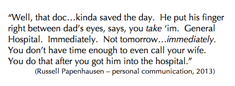 “I didn’t know what the hell was wrong with me,” Russell told me last week, fingers twisting together, gaze cast down to the kitchen table. Russell, my interviewee, who fell ill when he was fourteen, and talks about it like it happened a year ago, instead of seventy-three.